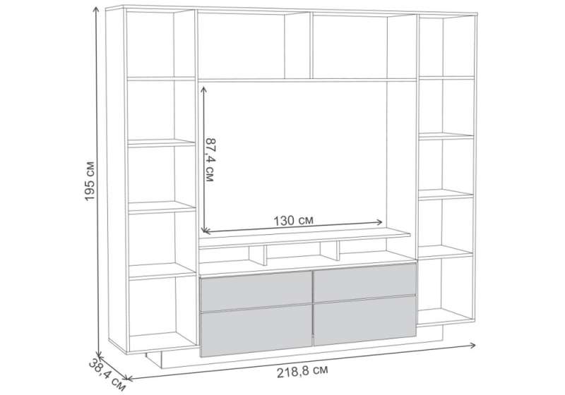 Размер ниши под ТВ: 130 х 87,4 см.