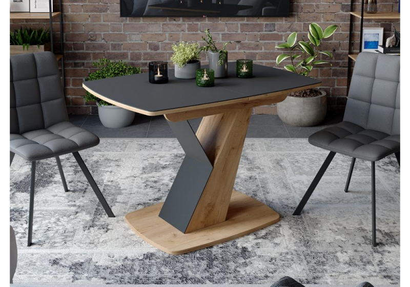Стол деревянный Гарда Тип 1 дуб крафт золотой / стекло матовое чёрный графит (75x75).