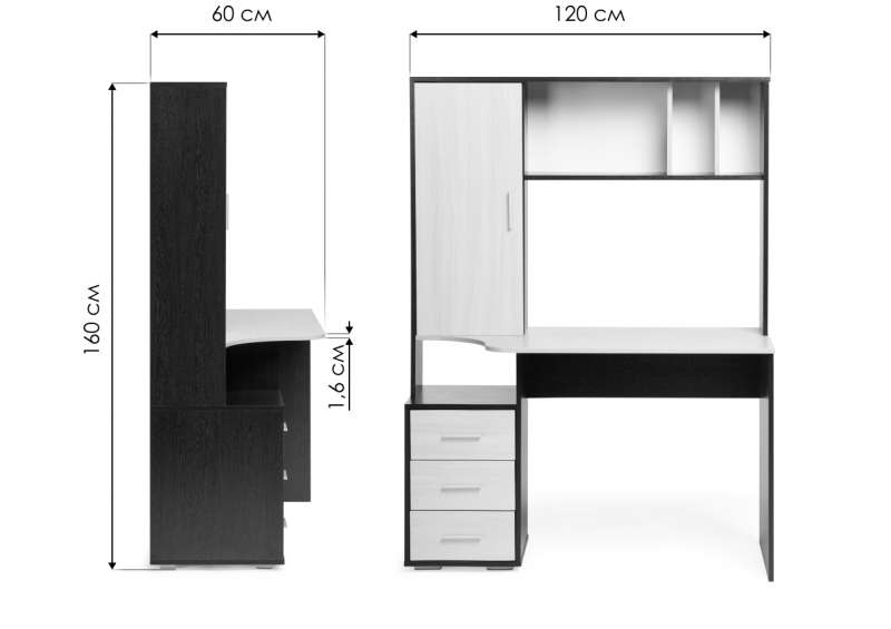 Компьютерный стол КСТ-16 120х60х160 левый венге / беленый дуб (120x60x160).